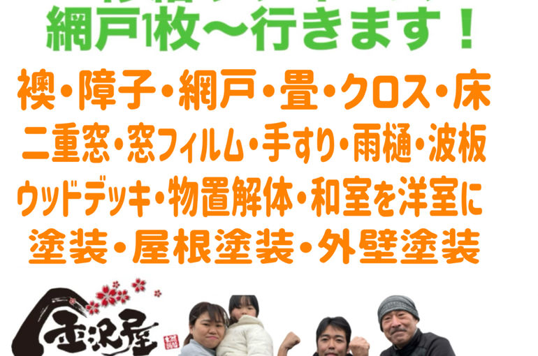 仙台の網戸・障子・襖・窓ガラスフィルムなら金沢屋!